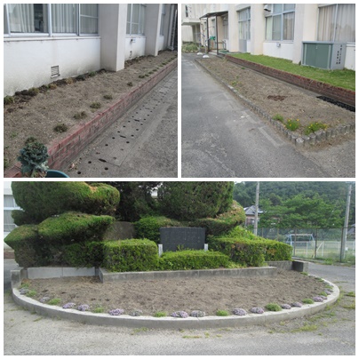 春が過ぎて夏が訪れようとしています。草花も春花壇から夏に向けて準備開始です。緑化ボランティアのみなさん、ありがとうございます。
