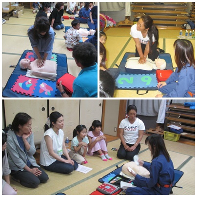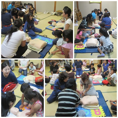 夏休みのプール開放を前に安全部のみなさんが中心となって救命救急講習会を行いました。講師は、瀬戸市消防本部の方々です。心臓マッサージ、AEDなどいざというときに必要な知識と技能を持っていると自信を持って行動できます。