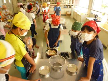 6年生は家庭科の調理実習で野菜炒めを作りました。にんじん、たまねぎ、ピーマン、ハムを塩とこしょうで炒めるシンプルな炒め物です。「おいしく!手際良く!」を目標にどの班も頑張って作りました。