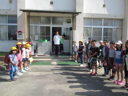 毎朝、あいさつ隊が職員室前であいさつをしています。今週の目標は、「担任の先生にあいさつしよう」です。みなさん、笑顔であいさつしましょう。