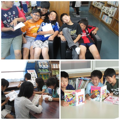 雨が幸いして、図書室は大賑わいです。高学年図書室に今日からソファーが入って、くつろぐ姿も見受けられます。本は心の栄養です。