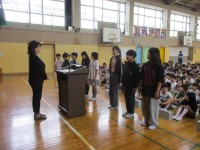 昼放課、読み聞かせボランティアの方が来てくださいました。雷注意報が出されて、運動場で遊べないので、図書室は大賑わいでした。
