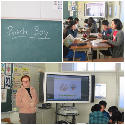 「Peach Boy(桃太郎)」の音読を聴きます。I'll go to Onigashima. I'm Strong.