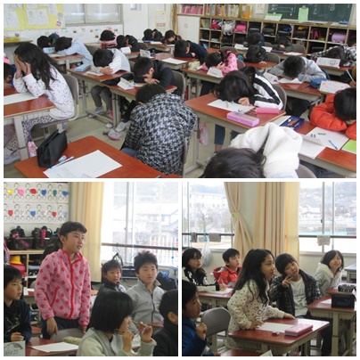 「Do you have a 〜 ?」とたずねます。初めは意味が分かりませんが、ALTの先生のジェスチャーでだんだんわかってきます。元気よく「Yes,I do.」「No,I do't.」返事をします。3年生の外国語活動の時間は、来年度は15時間になります。