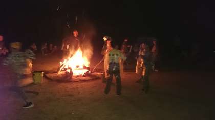 キャンプファイヤーは、品野台小学校と一緒におこないます。