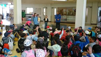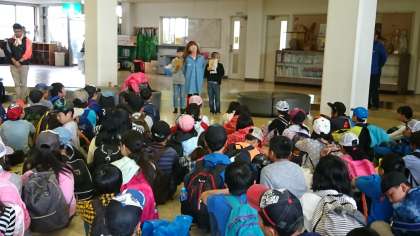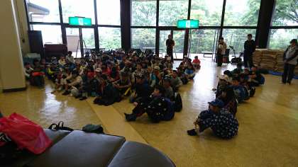 今のところ、けが人、病人なく、退所式がおわりました。いよいよ学校へ向かって出発です。天気は小雨になりました。