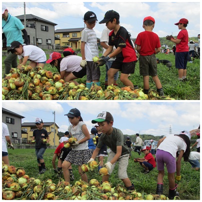 今日は、よい天気になり、玉ねぎの収穫体験に行きました。初めに、農協の方の話を聞き、たくさんの玉ねぎを収穫しました。今年は、いつもの年より、たくさんの玉ねぎができ、成長もよかったようです。友達と楽しそうに体験をしていました。