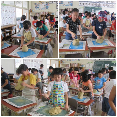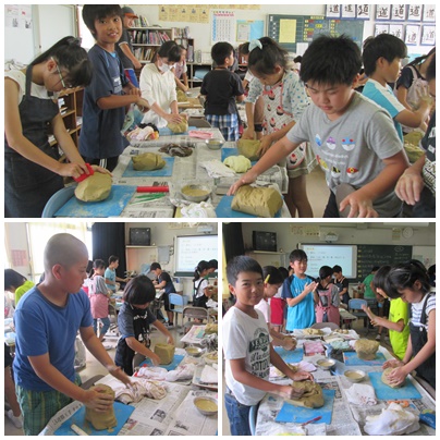 粘土で鬼のお面を作ります。つのの形はもちろん、髪の毛や目の大きさ、牙にも注意を払います。口の開け方もポイントですね。