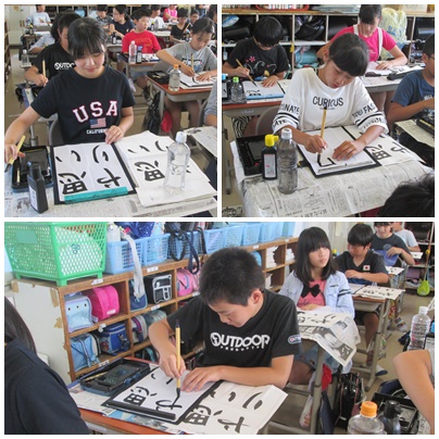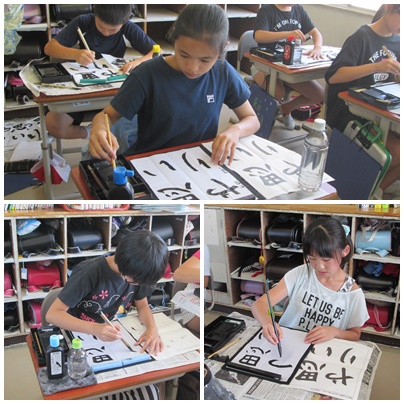 漢字「思」とひらがな「いやり」のバランスがむずかしい。真剣に集中して書きます。