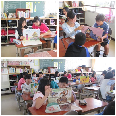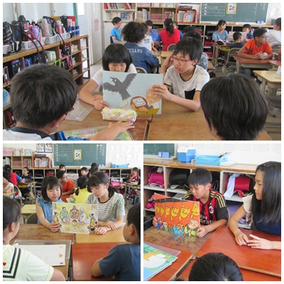 明日のなかよし読書のために6年生は紙芝居を読む練習をしました。大きな声で気持ちを込めて読むのはなかなかむずかしく、練習が必要です。クラスの友達に聞いてもらって練習を重ねていました。