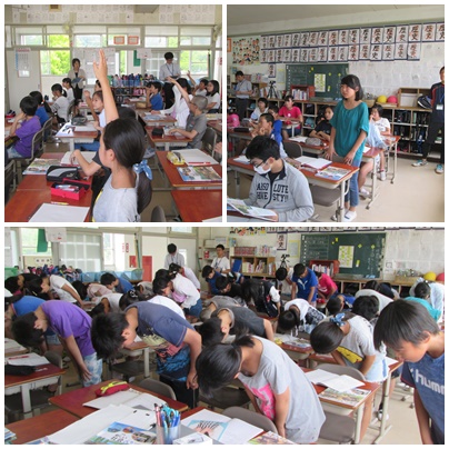 本校では現職教育研修の一環で研究授業を行っています。今回は5年生の算数で行いました。多くの先生が参観する中、礼、手がピンは、しっかりとできていました。それに加え、配布物を後ろに配るときのやさしさも感じられました。授業規律はOKです。