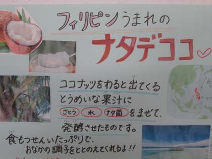 食育コーナーにナタデココが掲載されました。今週の金曜日に給食で出ますよ。