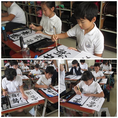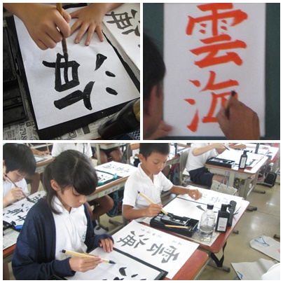 5年生の尾書研コンクールの課題は「雲海」です。3年生の「小犬」、4年生の「名月」と比べると画数が多くなりなかなか美しく書けません。