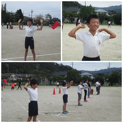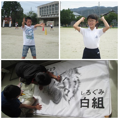 ただいま、応援旗を作成中です。練習にも熱が入ってきました。みんなの声援を一身にあびる応援団。大役です。