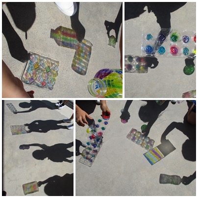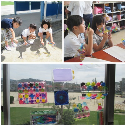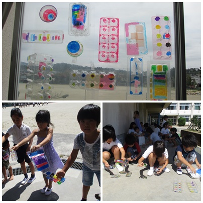太陽の光をうまく通して、工夫した作品を作ります。作ることも楽しいですが、光からのプレゼントで遊ぶことも楽しいですね。