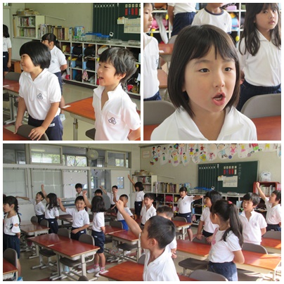 1年生の朝の会は応援歌「ゴーゴーゴー」から始まります。さすが1年生、元気いっぱいです。