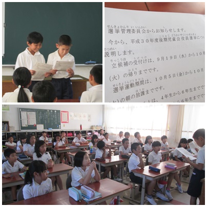 後期児童会役員選挙の公示がありました。4年生にとっては、選挙管理委員会の役割は初めてです。公示って?立候補って?選挙運動って?わからない言葉がたくさんあります。