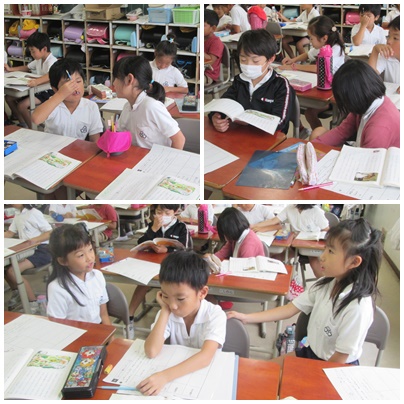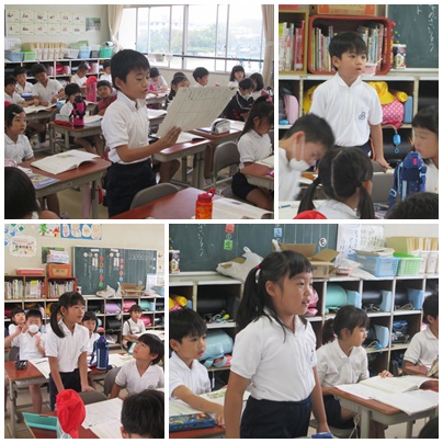動物園の中を見回る獣医さん、どうして、これが仕事になるのか読み取ります。まず、自分で考え、ペアで話し合って、発表します。2年生でも「学びあい」が定着してきました。