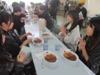 2時間目と3時間目の間の放課は、何と25分もあります。しかし、今日は雨。外で遊ぶことができません。そんなときはテレビでアニメが放送されます。この集中力を見てください。
