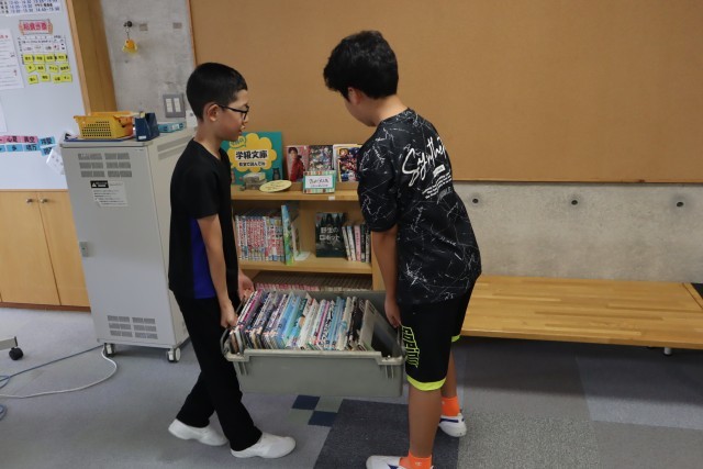 コンテナいっぱいの本が、しばらく教室で読めることになっています。