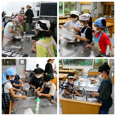 10月1日は、3年生が待ちに待ったお楽しみ会の日でした。みんなでクレープを作りました。エプロンを着たり三角巾をつけたりするのも一苦労。でもみんな本当に楽しそうです。クレープに自分で思い思いの盛り付けをしました。具を入れすぎてしまって巻くことができない子もちらほら・・・。給食を食べたあとでしたが、みんな「おいしい!」としっかり食べていました。