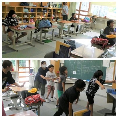 1,2年生は運動会の練習をしていて不在でしたが、3年生以上の子どもたちは、季節の変わり目で風邪を引きやすい今、健康な生活について考えていました。少し余った時間は、運動会の集団演技の踊りを踊っていました。学年が上がるにつれ、腰の入れ方や手の使い方が上手になってきます。4年生以上の集団演技ですが、3年児童も音楽に合わせて思わず体が動き、楽しそうにしていました。