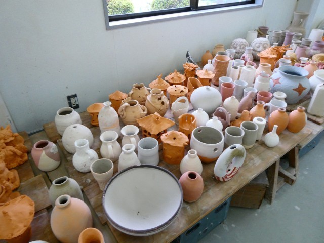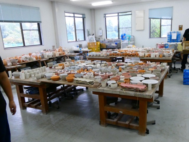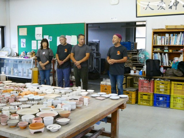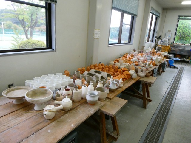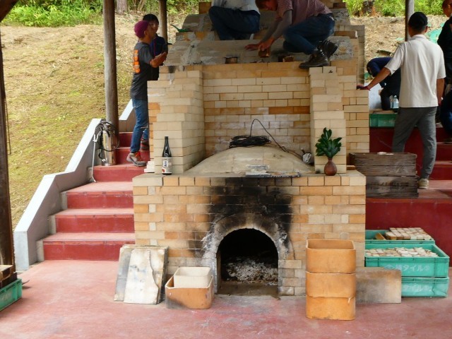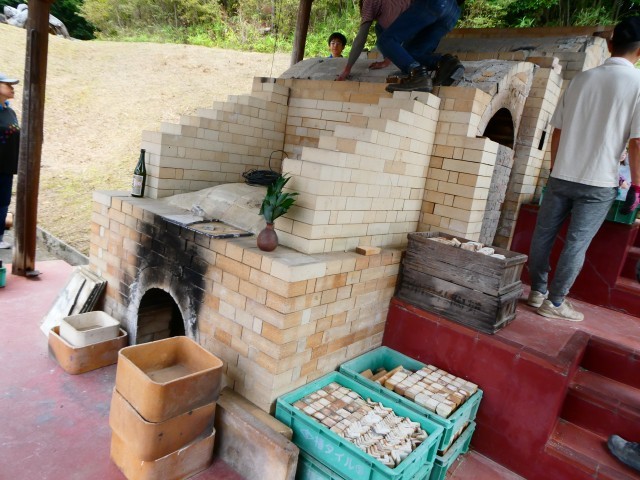 名古屋学院大学の登り窯で、本日、作品の窯詰め作業が行われました。ここには、ふれあい学級の際に6年生が保護者の方と作陶したランプシェードも入っています。雨が心配だったため、屋内にいったん作品を全部集め、作品の高さごとにまとめて置いていきます。品野台小学校の他にも品野中学校や水野小学校窯業部の作品もありますし、窯屋さんや作家さんの作品なども続々と運ばれてきていました。しなの登り窯実行委員会の方のあいさつのあと、講師の方々に登り窯の仕組みや歴史、窯詰めなどの注意点を教えていただき、窯詰め作業に入っていきます。明日からは薪を使った焼成に入り、窯の内部の管理をしながら15日までかけて焼成していくそうです。