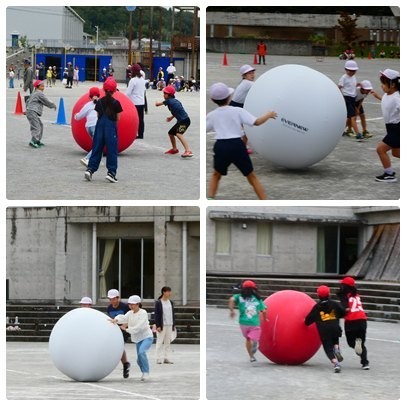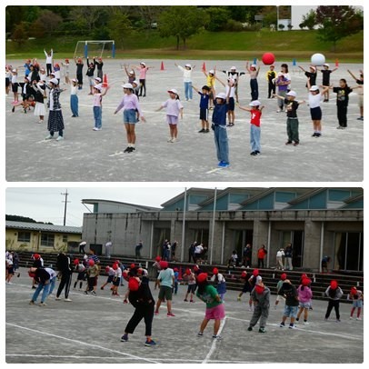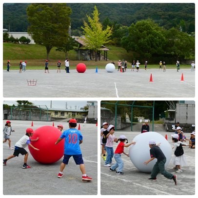 今日の業前~1時間目にかけて、運動会の全体練習が行われました。今日は、ラジオ体操と大玉転がしの練習です。ラジオ体操は、保健体育委員会の子どもたちを前に、全校児童で行いました。そのあとは大玉転がしの練習です。1~4年生は転がってきた大玉をトラックに沿って送っていきます。5,6年生は送られた大玉を自分たちで転がして、再び1~4年生が待つゾーンへと勢いよく走って行きます。協力して効率良く大玉を送っていくことがポイントですね。