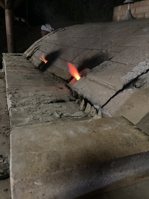 窯の温度は1000℃を超えているそうです。いろんなところから、火が出ていました。