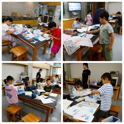 2年生の図工は、読書感想画コンクールの絵を描いているところでした。見に行ったときは、それぞれお気に入りの場面のパーツを作っていました。クレヨンが絵の具をはじく特性をいかして、クレヨンと絵の具を上手に使い分けて描いていました。