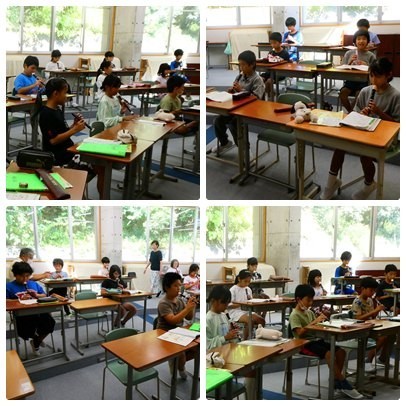 音楽の授業では、ソーラン節の練習をしていました。前奏の部分を手拍子でリズムを取ったり、リコーダーで吹いたりしていましたが、この曲はみんなにとって、とてもなじみのある曲。そう、運動会で披露する曲です。聞くだけで思わず体が動いたり、合いの手を入れたくなったりしてしまいます。最後はみんなで「もののけ姫」をリコーダーで演奏しました。高音もきれいに揃っていて、思わず聞き入ってしまいました。
