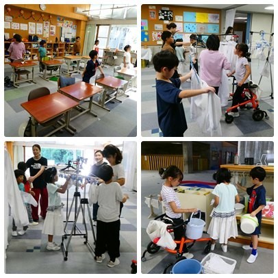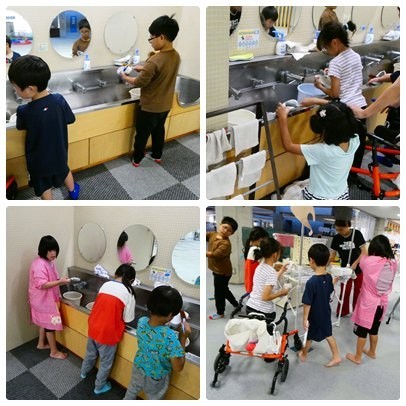 あおば組の金曜の午後は、毎週恒例上靴洗いの日です。はじめに給食の白衣をみんなで干して、そのあと、上靴洗いに入ります。今ではすっかり慣れてきて、上靴洗いの音楽に合わせてリズムよく上靴を洗っていました。