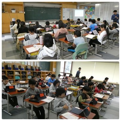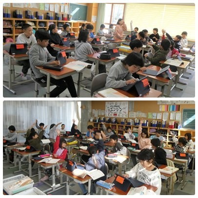 4年生は道徳の授業で、ゴミ拾いの話を通して、主人公の気持ちについて考えているところでした。はじめは一人で考え、その後少人数で交流し、最後にはみんなの前で自分が考えたことを発表していました。