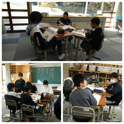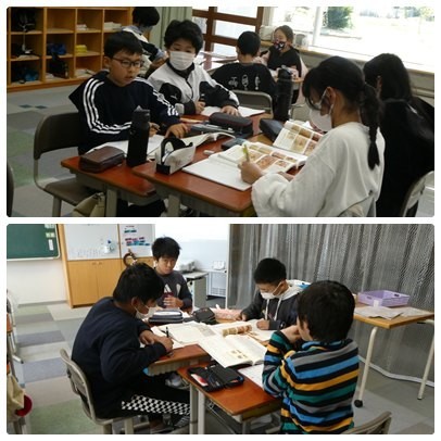「『鳥獣戯画』を読む」の教材では、文章だけでなく、実際の絵も多く掲載されていて、文章と絵とを結びつけながら読み取っていきます。今日は「絵巻物」の説明や論の展開の仕方など、筆者の工夫について考えているところのようです。