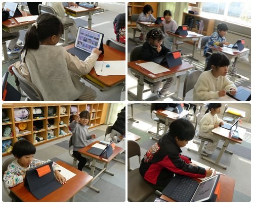 1年生の図工では、版画の下絵を描いていました。テーマは「動物園にいた動物」です。東山動物園の思い出を振り返りながら、自分が彫りたい動物を決めていました。