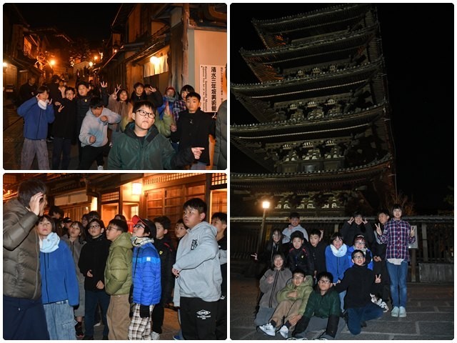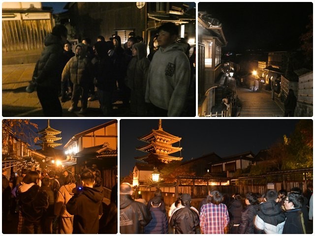 ご飯のあとは、宿の方の案内で八坂の塔付近の散策に出かけました。人が多かった二年坂も、夜になると全く様子が違い、静かでとても幻想的でした。
