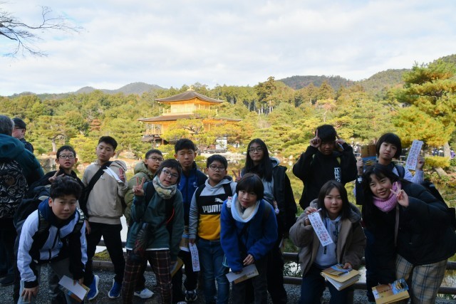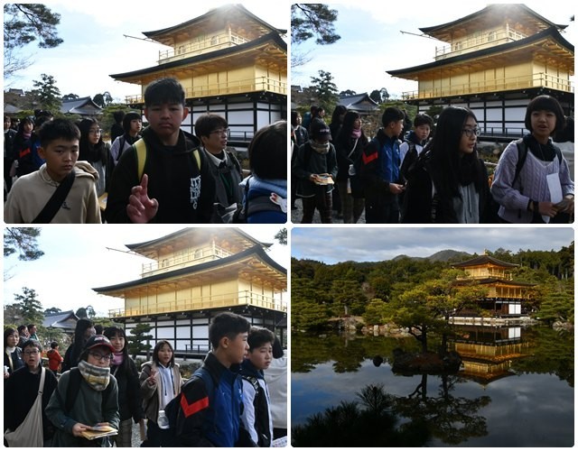 次なる見学地は金閣寺。金ぴかの立派な寺が見えてきたときの感動はひとしおです。池に映った金閣寺もとてもきれいでした。