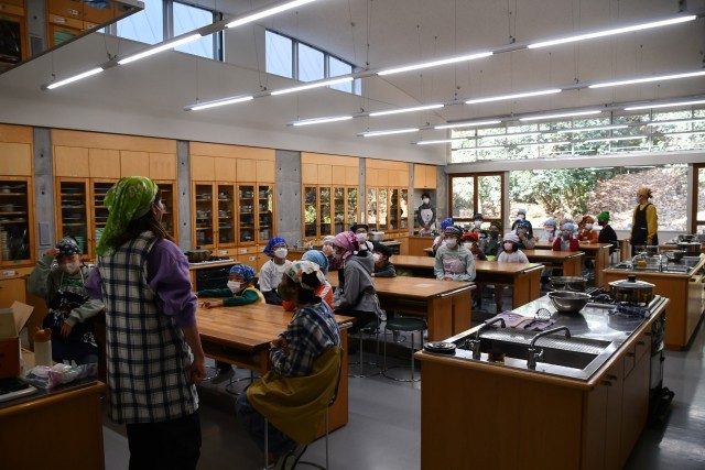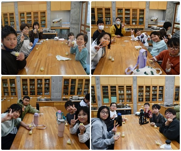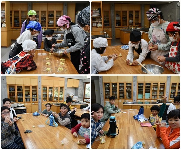 1年生と6年生が、インフルエンザの影響で延期になっていた「芋きんとん作り」を行いました。6年生は1年生が来る前に、芋の皮をむいたり芋を切ったりという下準備を行ってくれていました。いよいよ全員そろって、芋きんとん作りに入ります。6年生の子どもたちが芋をつぶす作業やラップで形を作る作業などを1年生に丁寧に教えてくれていました。作業は順調に進み、いよいよ実食!「おいしい~」という声が飛び交いました。