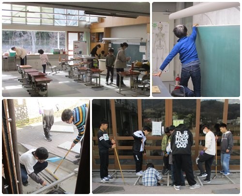 あおば組は、自分たちの教室を、4~6年生は裏山や昇降口、特別教室や体育館などを集中的に掃除しました。お試しで業者より貸していただいているお掃除ロボットも頑張っていました。