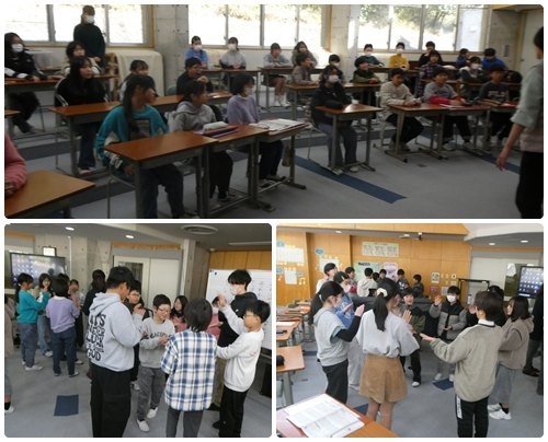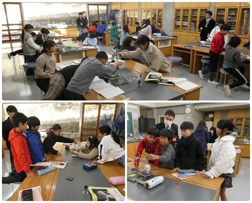4年生は理科の実験。水の温度の上がり方の実験のようです。5,6年生は音楽。昔ながらのリズム遊びをしたり合唱や合奏をしたりして、いつもとは違う大人数での音楽を楽しみました。