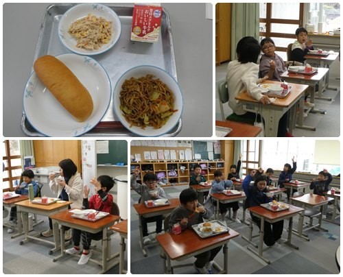 今日の給食メニューは、小型ロールパン、瀨戸焼きそば、切り干し大根サラダ、牛乳です。朝から今日の瀨戸焼きそばを楽しみにしている子たちがたくさんいました。お手製焼きそばパンを作っている子も・・・。みんなおいしいと言ってたくさん食べていました。「次はあおば組!」と思ってあおば組へ行くと、ほとんどの子が食べきっていました。先生に聞くと、いつもより準備も食べるのもすごく早かったそう。瀨戸焼きそばはすっかりおかわり分もなくなっていました。