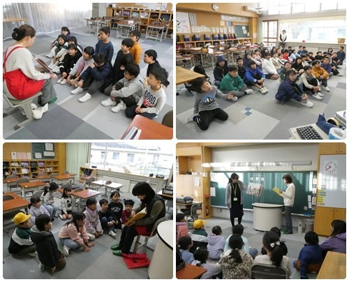 1月19日から読書週間でした。その中で、おはなしポケットの皆様、らんぷの会の方々、図書館司書さんに読み聞かせを行っていただきました。学年や人数に合わせていろいろ工夫をしてくださり、時にはお話の中で子どもたちとやりとりがあったりして、子どもたちも身を乗り出すように聞いている姿が印象的でした。あおば組は、体を動かしながらの読み聞かせに、なりきって楽しそうに体を動かしていました。たくさんの方に来ていただき、子どもたちの本と親しむ機会も広がります。ありがとうございました。