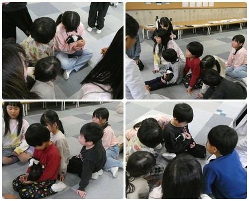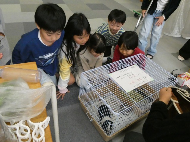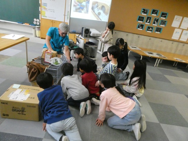 愛知県獣医師会によるモルモット・ホスティング事業により、モルモットの「うしおくん」がやってきました。昨年度も品野台小学校に来てくれたうしおくん。1歳半くらいになったそうです。獣医の先生により命の授業が行われ、人間の心音とうしおくんの心音を聞き比べたり(速さが全然違います!)、うしおくんが安心して生活するためにどうしたらいいかなどを教えていただいたりしました。最後には一人ずつうしおくんを膝の上に抱かせていただきました。はじめはちょっと緊張していましたが、優しくなでているうちに、子どもたちの表情もとっても優しいものになりました。