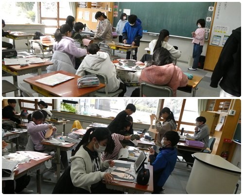 5年生は6年生を送る会の壁画を制作していました。詳しくは言えませんが、とっても素敵です!まだまだ制作途中ですが、それでも「おお~」となります。完成が楽しみです。