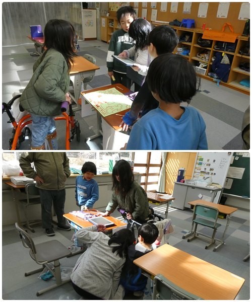 あおば組のあそびのしどうの様子。自分で作った遊びをみんなに紹介しています。中にはこの時間を楽しみに、家で準備をしてきた子もいました。