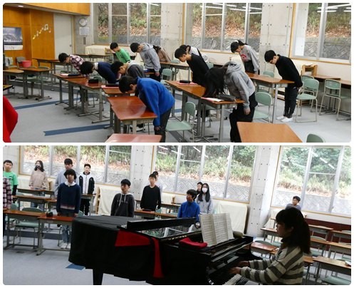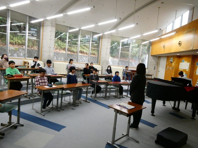 各学年、送る会に向けての準備が進む中、6年生はいよいよ卒業式に向けての準備が始まってきました。教務主任の先生から卒業式に向けての心構えを話してもらったあと、卒業式の流れや動作の確認をしました。みんなピシッと座っています。そのあとは合唱の練習をしました。