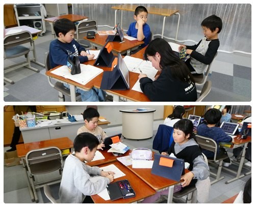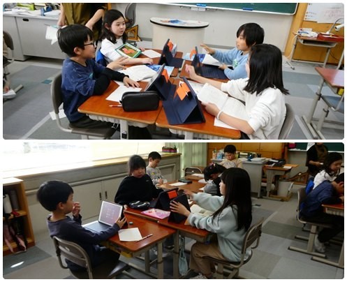 国語の授業で「お気に入りの場所、伝えます」の発表をしていました。タブレットで取った自分の好きな場所の写真を見せながらグループのみんなに紹介していました。