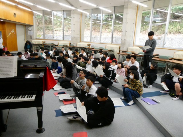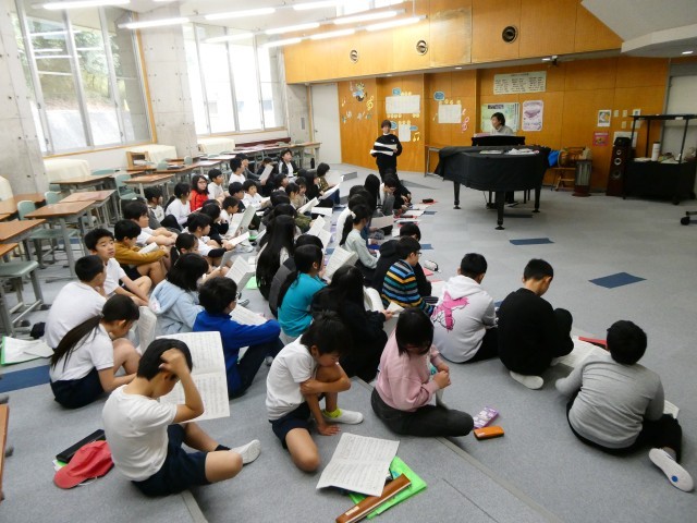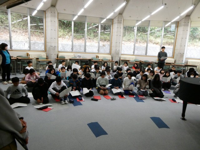 4,5,6年生合同の音楽です。卒業式に向けて合同合唱の練習を行っていました。2部合唱になるので、音をしっかりとっていくことが大切です。他のパートにつられないよう、部分ごとに区切って音を確認しながら練習していました。
