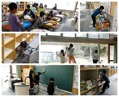 3月6日は集中清掃日(大掃除)でした。1年の締めくくりとして、自分たちの学級を中心に掃除しました。各自の机の中やロッカーはもちろん、網戸や窓枠のさん等もきれいにしていました。4年生はトイレや手洗い場の掃除もや行ってくれています。水場の大掃除はたいへんですが、とてもしっかりやってくれていました。
