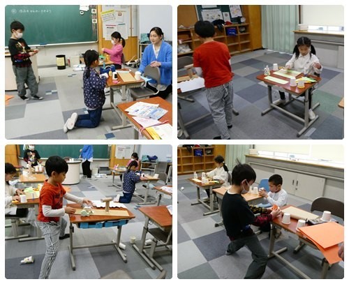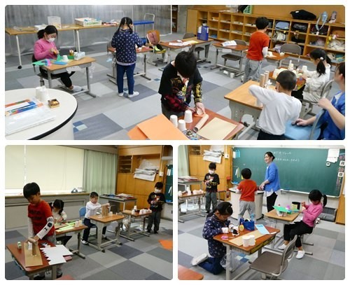 2年生は、「とびだすおもちゃ」の仕上げに取りかかっていました。より跳ぶように改良したり、飾り付けをしたりしてそれぞれ工夫を凝らして作っていました。